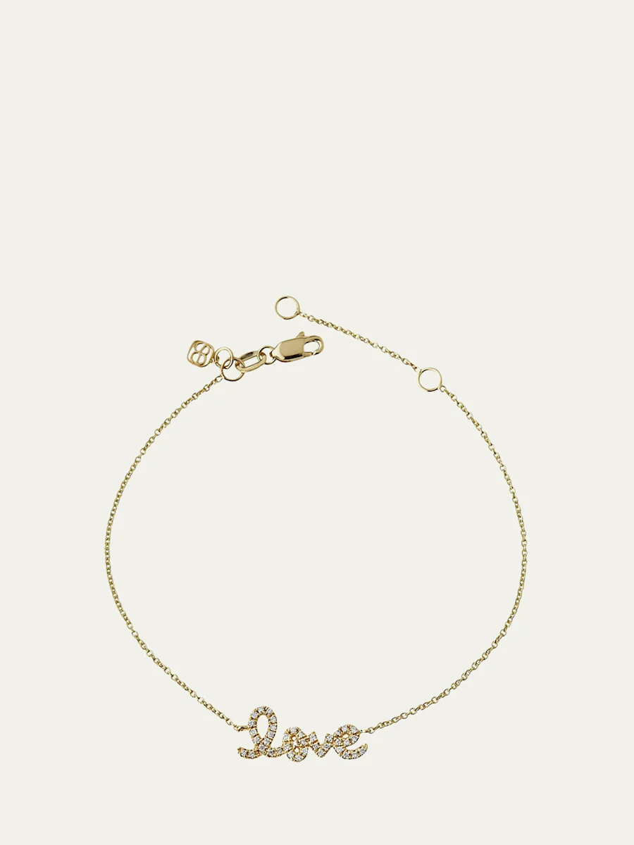 14-karat yellow gold cable chain. Integrated "love" charm with pave white diamonds. 0.12 total diamond carat weight. Approximately 5 3/4-6 1/2"L. Lobster clasp. Made in USA. Online Inquiries: BGS21_JD55T| Store Inquiries: #226332
