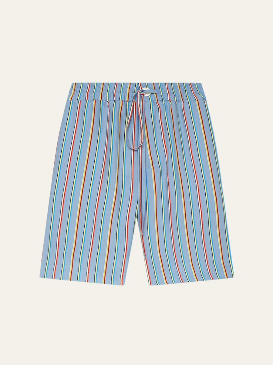 The Elder Statesman shorts in multicolor striped jacquard Elasticized waist Drawstring and button fastening Relaxed legs Pull-on style Silk Made in Italy Online Inquiries: BGS21_NDG1X| Store Inquiries: #5037023