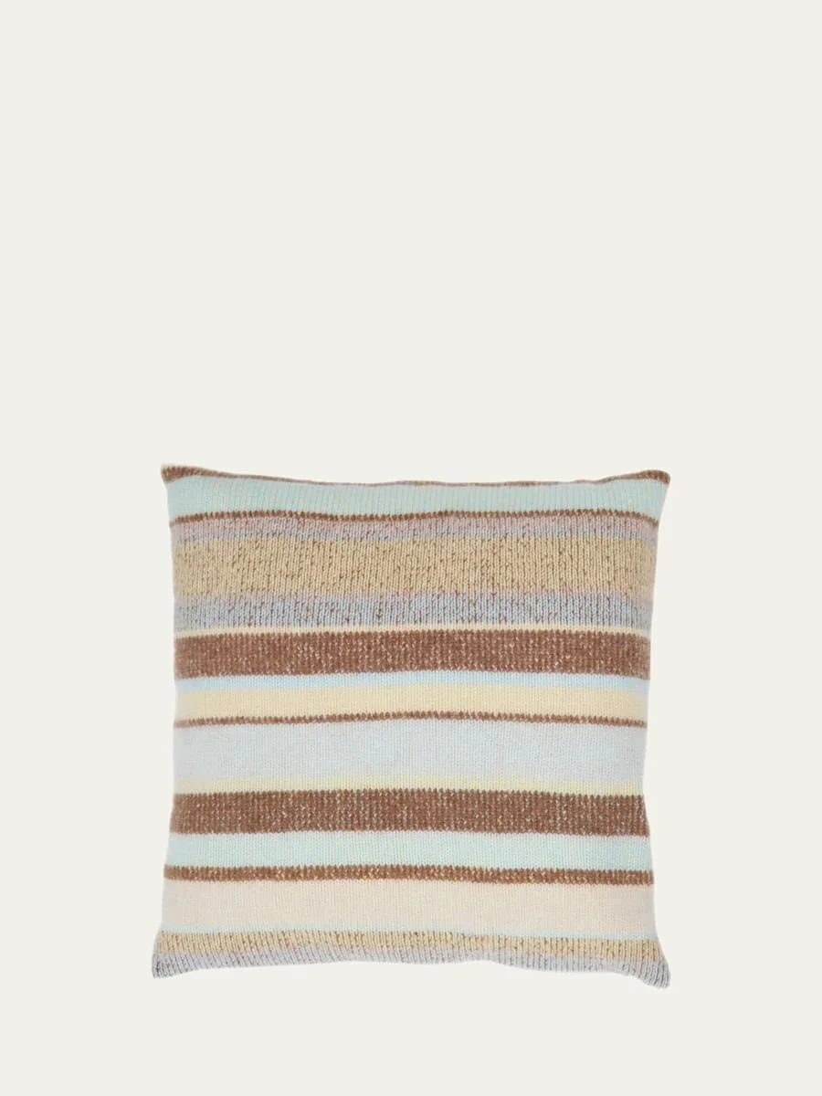 Striped pillow handcrafted of cashmere Hand loomed in knitter's choice technique Filled with organic cotton Approx. 20"Sq. Sold individually Dry clean Made in USA from imported materials