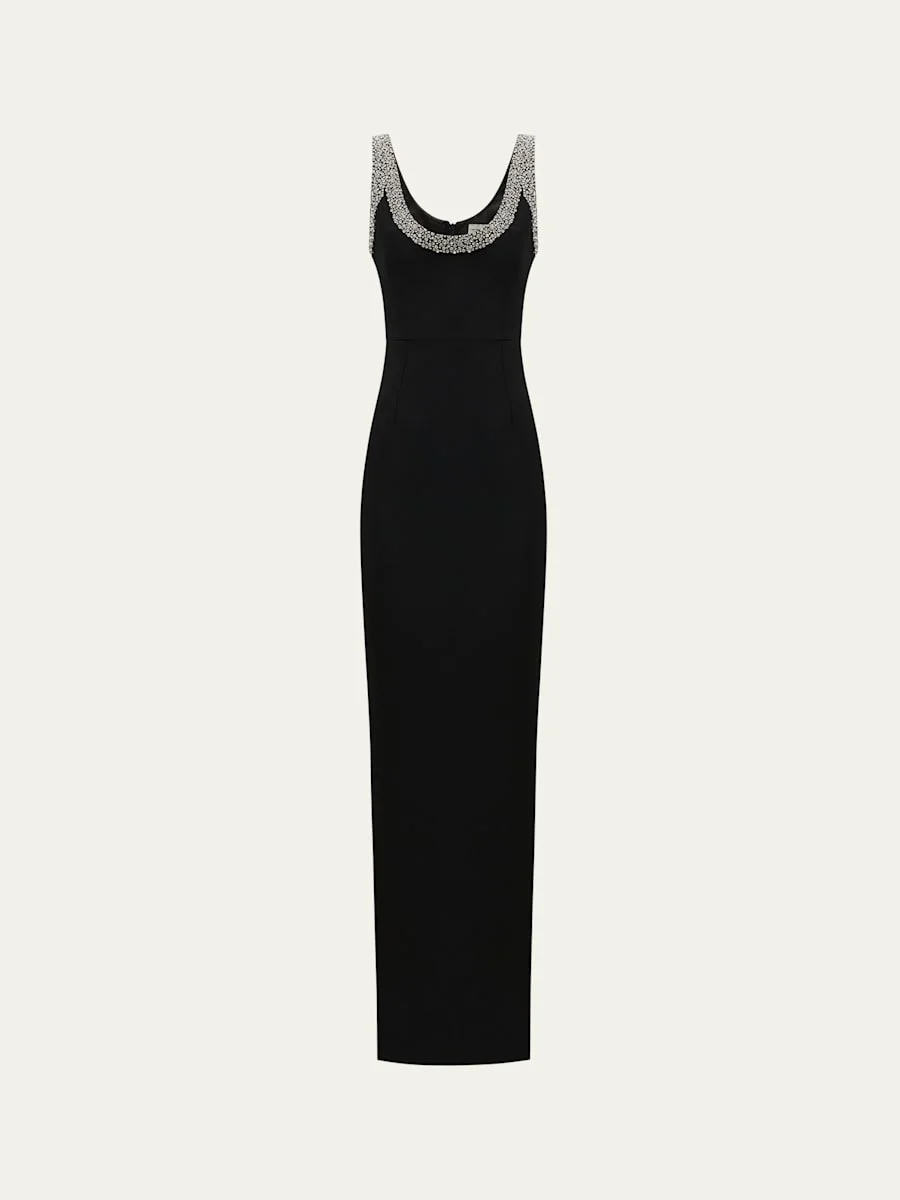 Crafted from crepe with a figure-flattering fitted waist, the Manu gown by The New Arrivals by Ilkyaz Ozel features shimmering crystal embellishments Scoop neckline Sleeveless Full length Bodycon silhouette Back zip closure Polyester Imported Online Inquiries: BGS21_T6WME| Store Inquiries: #5054384