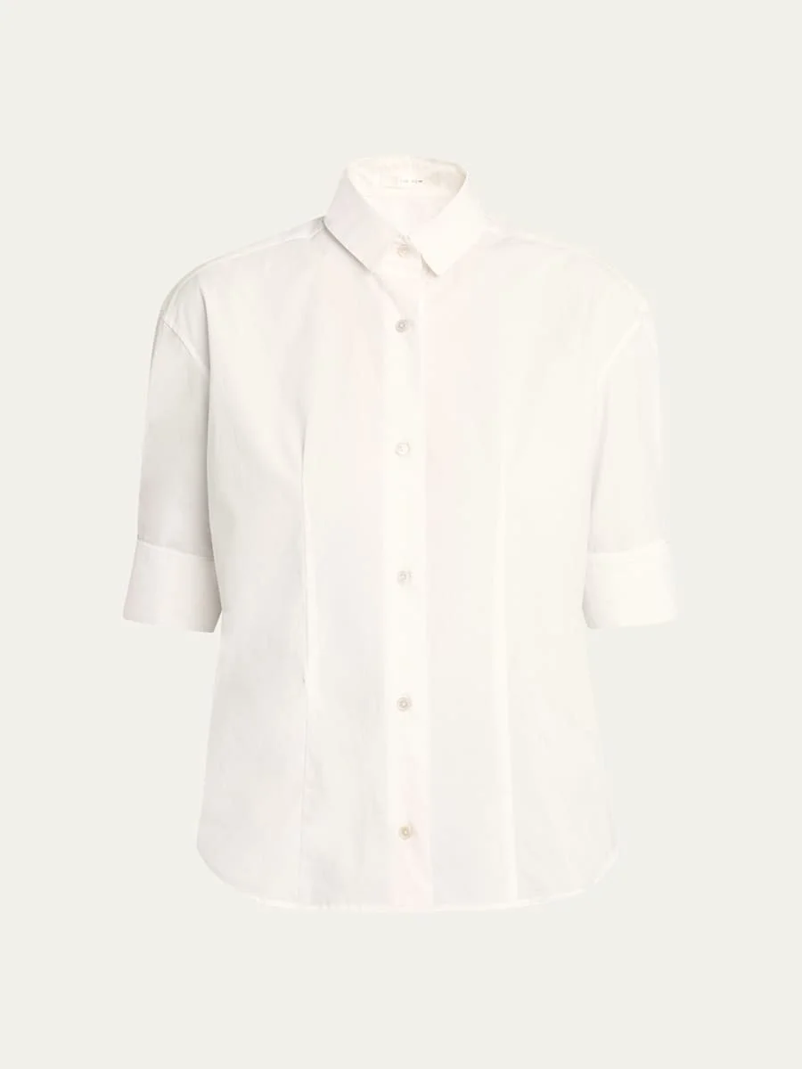 THE ROW "Carpazi" shirt in cotton poplin Point collar; button front Short sleeves; French cuffs Relaxed fit Hip length Shirttail hem Cotton Made in Italy Online Inquiries: BGS21_BAAQF| Store Inquiries: #5068738