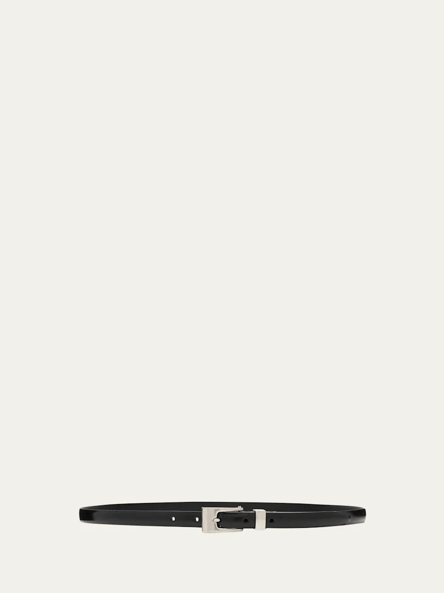 A slim, minimalistic design, the "Downtown" belt by THE ROW is crafted from smooth Italian calf leather Approx. 1"W Silver-tone rectangular buckle Adjustable fit Made in Italy Online Inquiries: BGS21_D5BRP| Store Inquiries: #5068687
