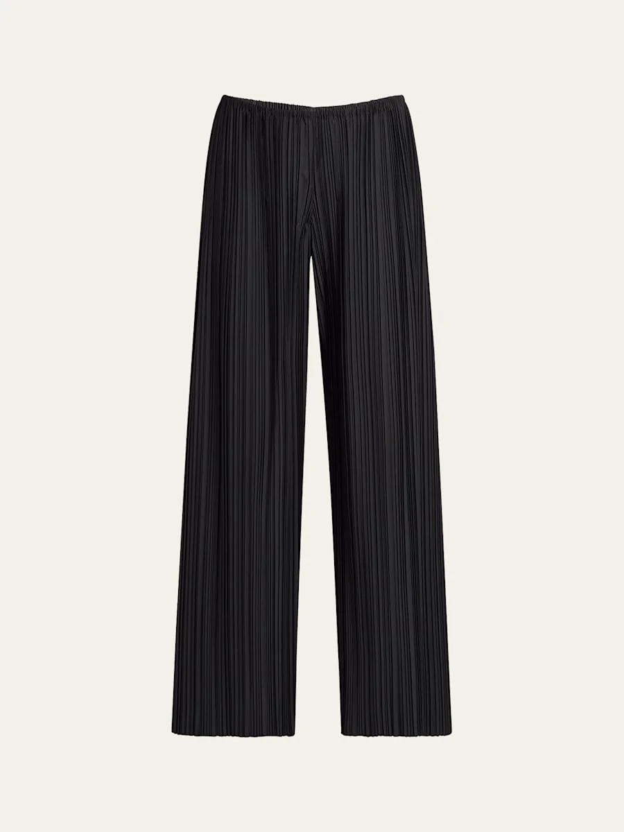 THE ROW "Gala" pants with allover pleated detail High rise Elastic waistband Full length Flat front Wide legs Step-in style Polyester/wool/silk Made in Italy Model is 5'10"/177cm. Online Inquiries: BGS21_B9M94| Store Inquiries: #4912102