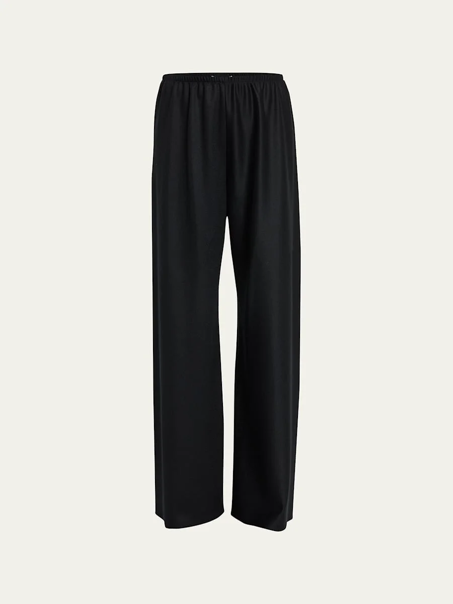 THE ROW "Gala" fluid pants High rise Slim gathered elastic waistband Wide legs Full length Step-in style Wool Made in Italy Model is 5'10"/177cm. Online Inquiries: BGS21_B7JMU| Store Inquiries: #4372285