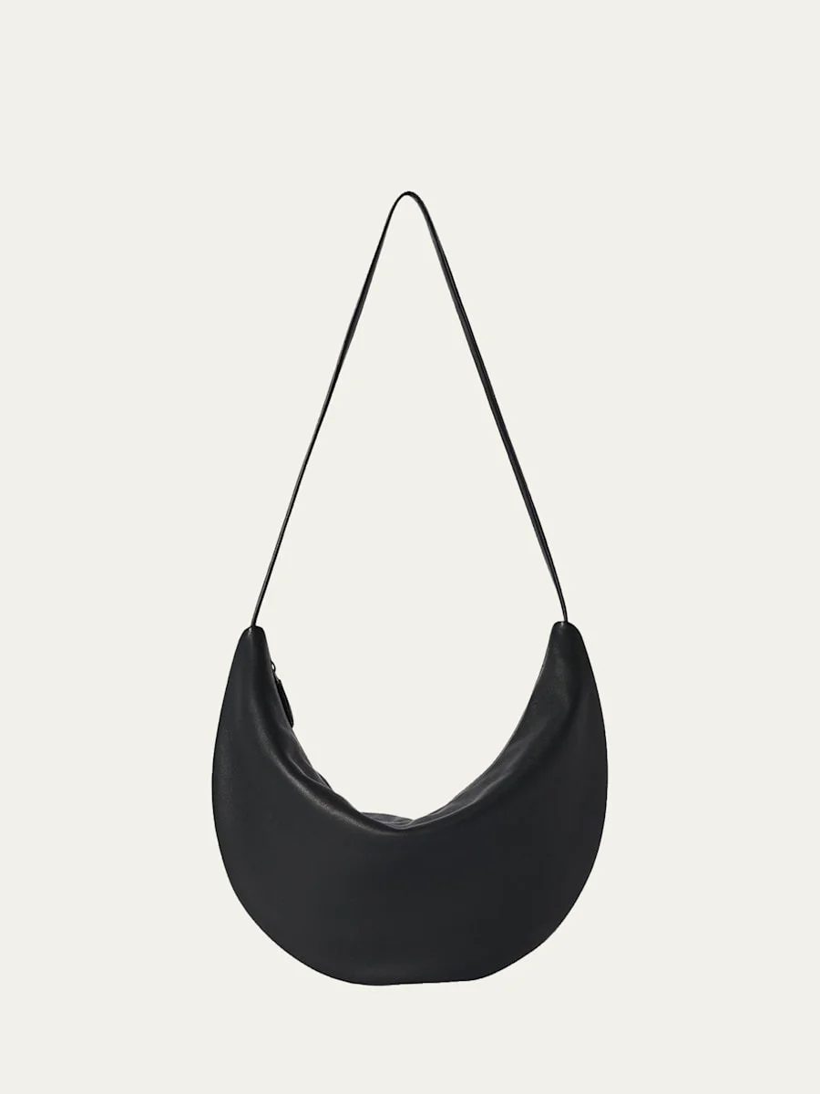This "Izzy" shoulder bag from THE ROW is designed in a relaxed crescent silhouette, rendered in soft leather Flat shoulder straps Zip top closure Approx. 7.4"H x 12"W x 0.7"D Made in Italy