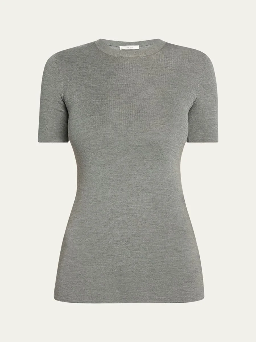 THE ROW "Jannat" finely knit top Crew neckline Short sleeves Fitted Pullover style Silk Made in Italy Online Inquiries: BGS21_B9R3V| Store Inquiries: #4948639