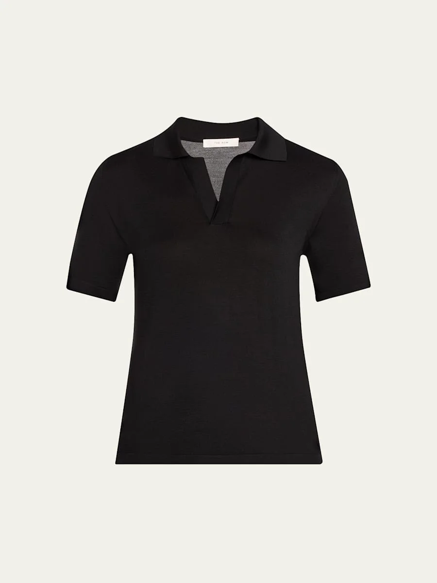 THE ROW "Julianna" polo shirt in a silk knit Spread collar; split V front Short sleeves Slim fit Pullover style Silk Made in Italy Online Inquiries: BGS21_B9V0Z| Store Inquiries: #4977656