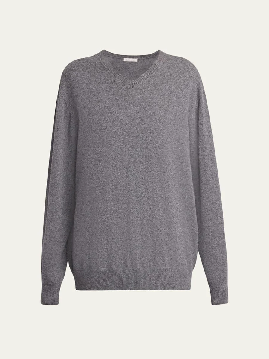 THE ROW "Ligeia" sweater is crafted from midweight soft cashmere knit designed for effortless layering, providing both comfort and understated elegance. V neckline Long sleeves Loose fit Ribbed cuffs and hem Pullover style Cashmere Made in Italy Online Inquiries: BGS21_BAATL| Store Inquiries: #5069387