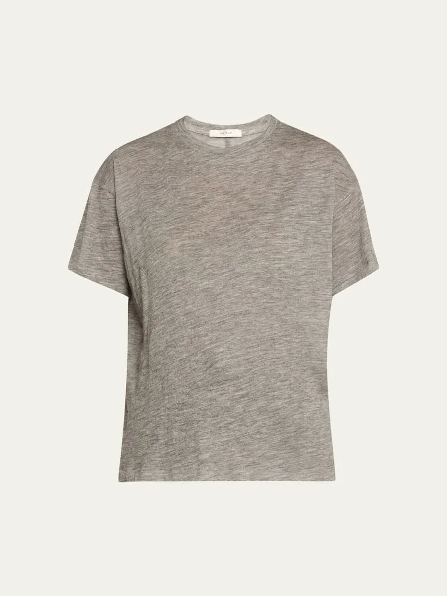 THE ROW "Lila" t-shirt in soft cashmere jersey with signature center back detail Crew neckline Short sleeves Hip length Relaxed fit Pullover style Cashmere Made in Italy Model is 5'10"/177cm. Online Inquiries: BGS21_B9GH2| Store Inquiries: #4870879