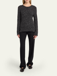 THE ROW "Maira" sweater is crafted of speckled cashmere knit featuring rolled edges Crew neckline Long sleeves Slim fit Pullover style Cashmere Made in Italy