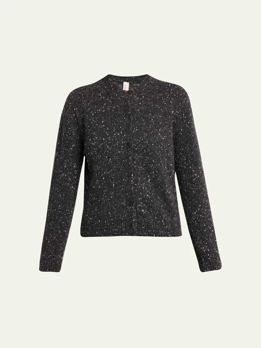 THE ROW "Mauino" cardigan is crafted of a warm speckled cashmere knit Crew neckline; button front Long sleeves Relaxed fit Hip length Ribbed cuffs and hem Cashmere Made in Italy