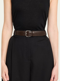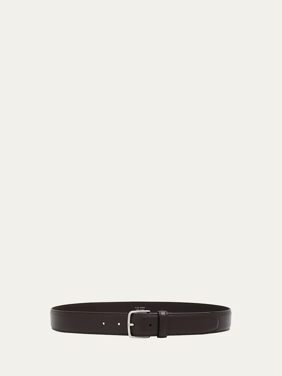 THE ROW maxi classic belt crafted of smooth calfskin leather with topstitching and goldtone hardware Medium width Adjustable fit Leather Made in Italy Online Inquiries: BGS21_D5BRZ| Store Inquiries: #5069259