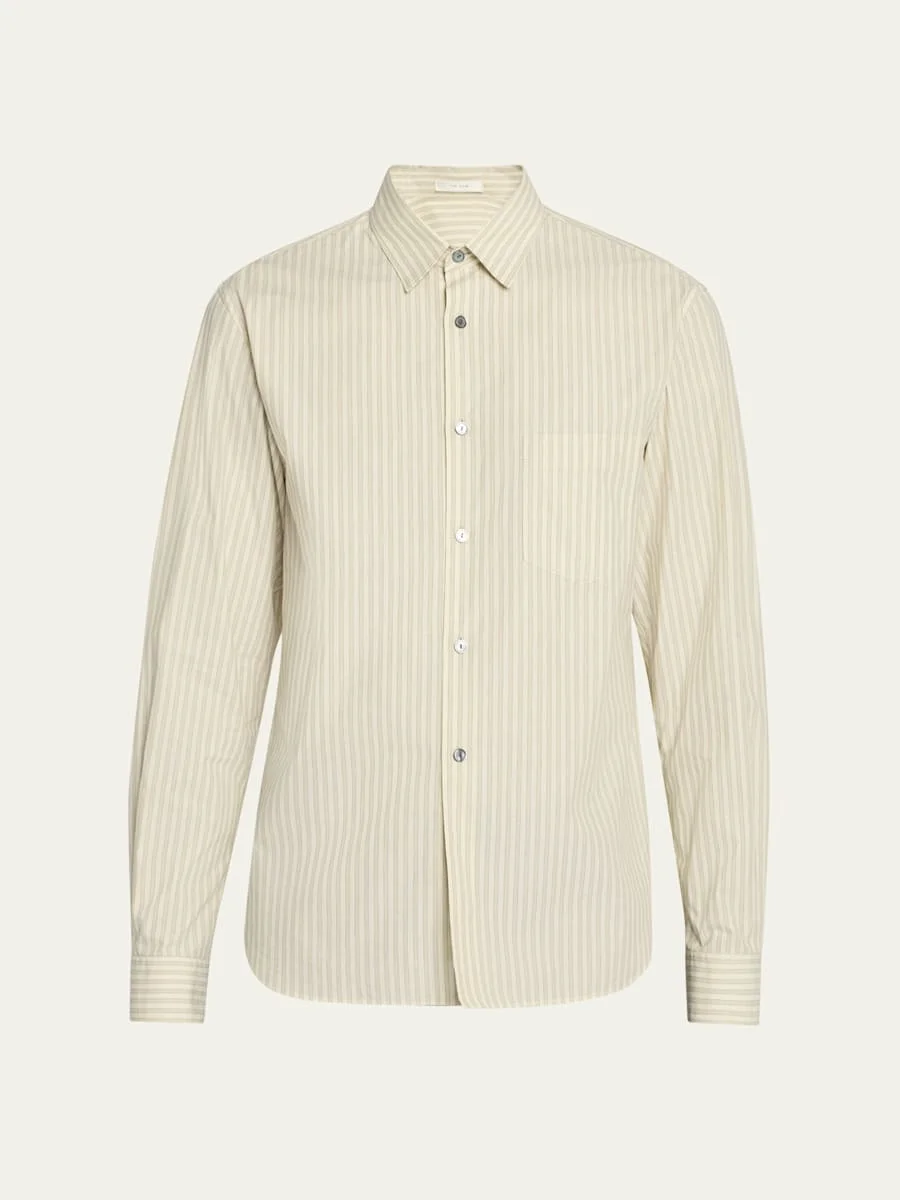 THE ROW "Ashford" striped sport shirt Point collar Button placket Chest patch pocket Long sleeves Knife pleats at back yoke Curved hem Cotton Made in Italy Online Inquiries: BGS21_ND16X| Store Inquiries: #4992911