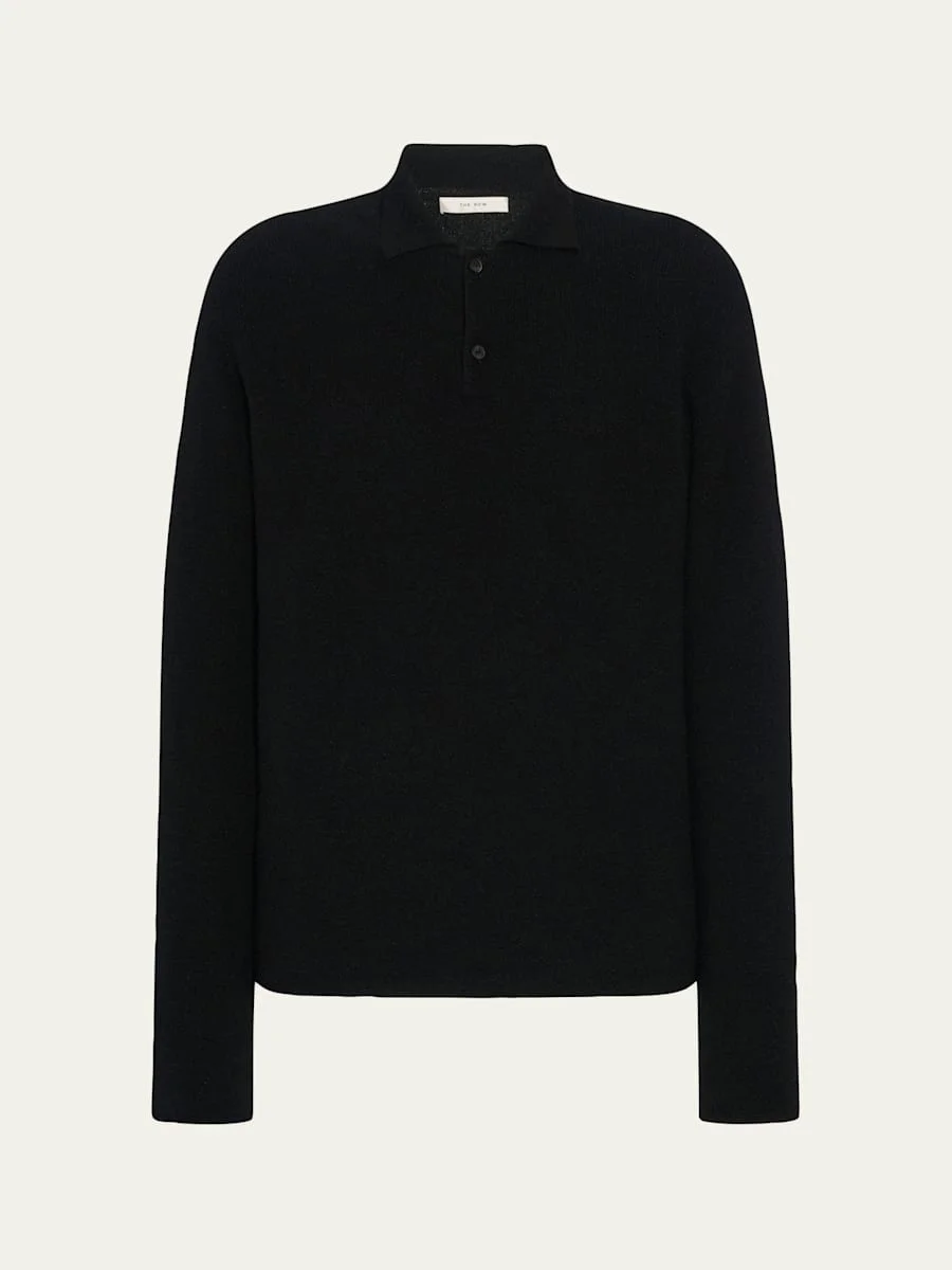 THE ROW "Tiger" polo shirt is crafted in smooth midweight cashmere and finished with a seamless construction Horn buttons Spread collar Twobutton placket Long sleeves Pullover style Boxy fit Cashmere Made in Italy