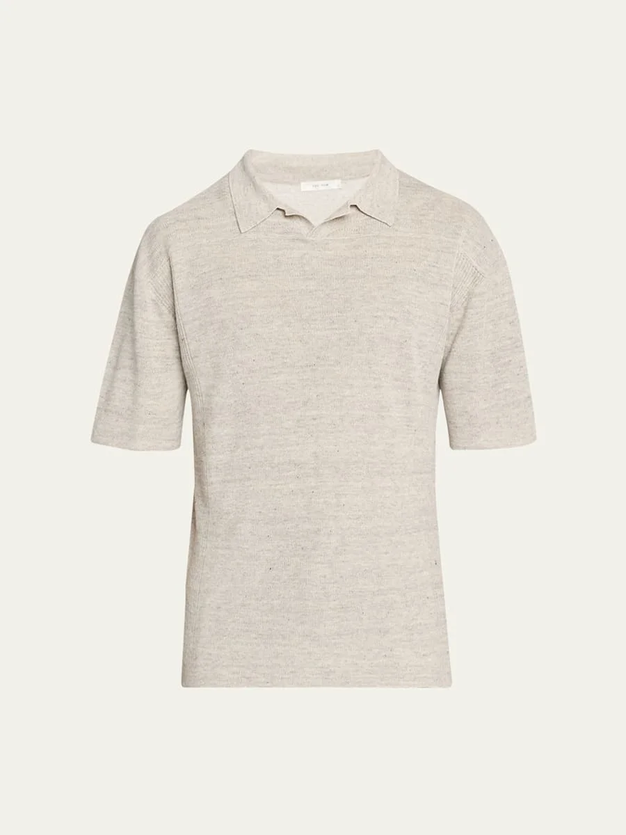 THE ROW "Reggie" polo shirt in melange knit Open collar Short sleeves Ribbed side panels Linen/viscose Made in Italy Online Inquiries: BGS21_ND16E| Store Inquiries: #4992894