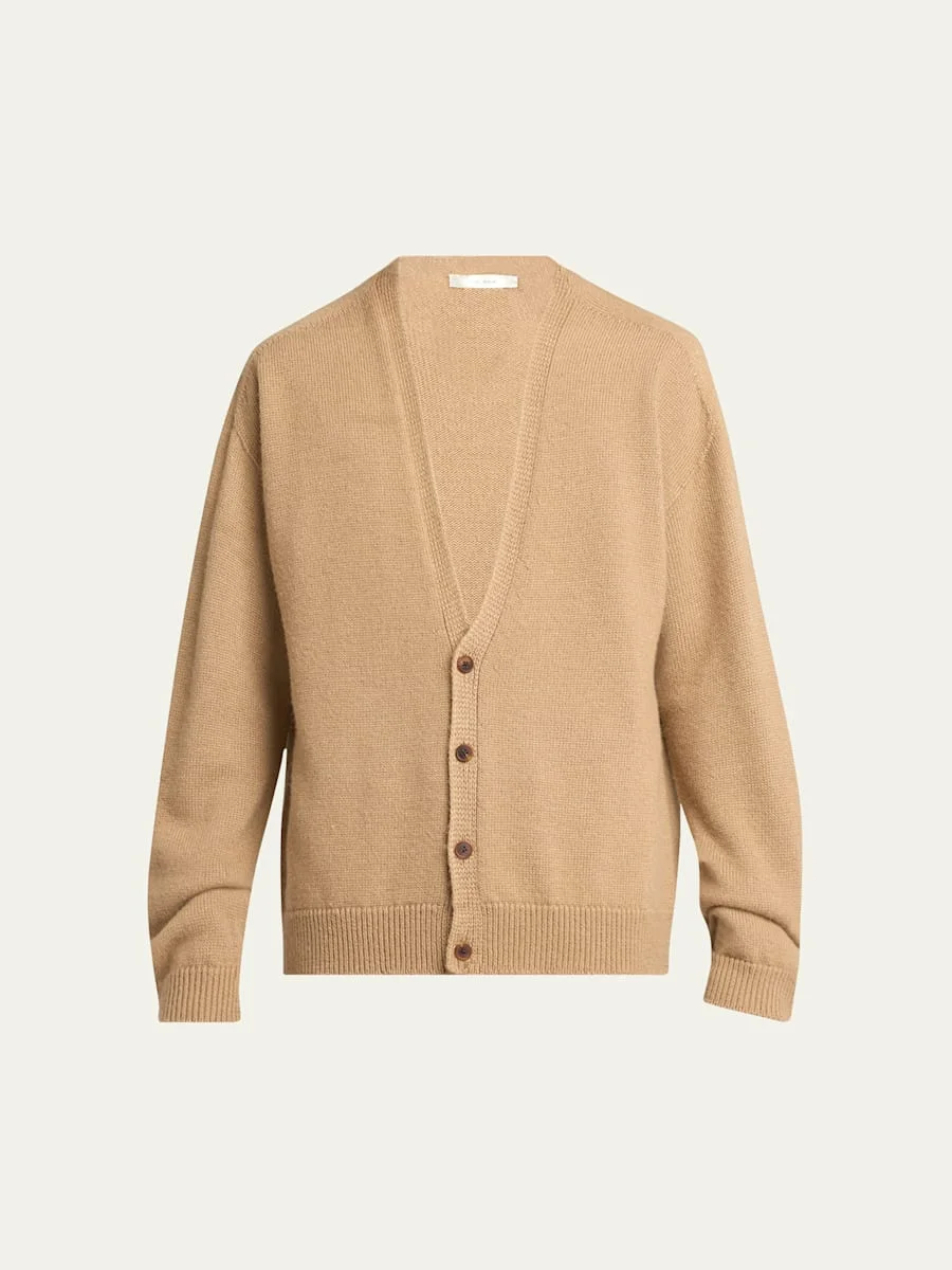 THE ROW "Sheldon" solid cardigan sweater V-Neck Button closure Relaxed fit Long sleeves Ribbed trim Wool/silk Made in Italy This item cannot be sold or shipped to California. Model is 6'1"/185cm. Online Inquiries: BGS21_NCGBF| Store Inquiries: #4879260