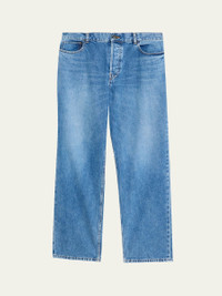 THE ROW "Ross" jeans in medium-wash denim with subtle fading and whiskering Regular rise Five-pocket style Relaxed fit through straight legs Button-zip front; belt loops Cotton Made in Japan Online Inquiries: BGS21_NDRSP| Store Inquiries: #5073439
