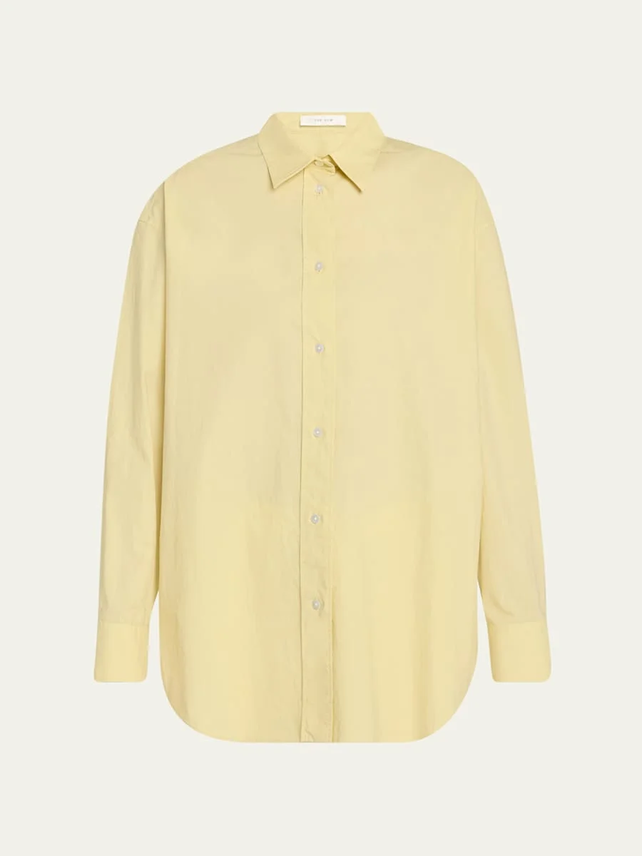 THE ROW "Millerina" washed cotton poplin shirt Point collar Dropped shoulders Long sleeves with button cuffs Relaxed fit Rounded hem Button-front Cotton Made in Italy Online Inquiries: BGS21_BA3A3| Store Inquiries: #5024348