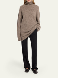 THE ROW "Mirai" sweater is crafted from a soft speckled cashmere knit Turtleneck Long sleeves Drop shoulders Oversized fit Ribbed cuffs and hem Pullover style Cashmere Made in Italy