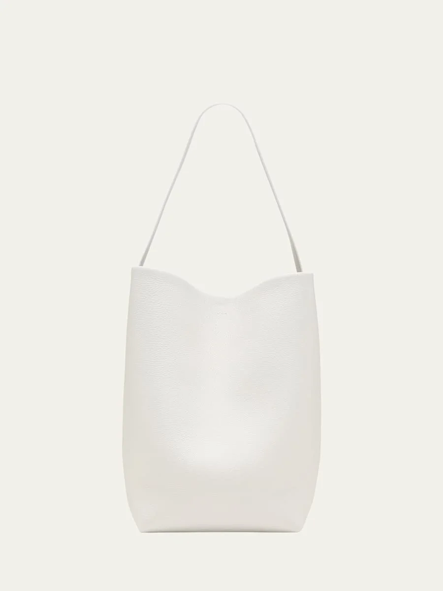THE ROW tote in pebbled calf leather. Fixed shoulder strap. Open top. North/south silhouette. Palladium hardware Approx. 15.5"W x 14.75"H x 8.25"D "Park" is made in Italy. Online Inquiries: BGS21_V5R92| Store Inquiries: #4050288