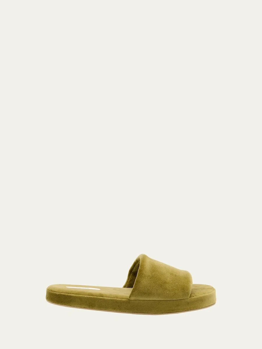 THE ROW "Pillow" cozy soft cotton slippers 0.25 in / 10 mm flat heel Open toe Wide band upper Slide style Rubber outsole Lining: Cotton Made in Italy