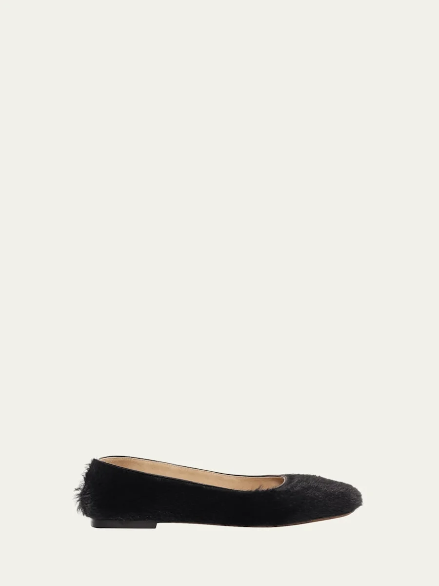 THE ROW ballerina flats in dyed pony hair (New Zealand) and goat leather 0.17 in / 5 mm flat heel Round toe Slip-on style Leather outsole Lining: Goat leather Made in Italy Online Inquiries: BGS21_X6WJL| Store Inquiries: #5025005