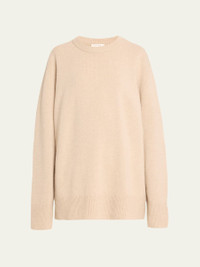 THE ROW "Sibem" knit sweater. Approx. length: 25" from shoulder to hem. Crew neckline. Long sleeves. Dropped shoulder. Relaxed fit. Ribbed trim. Pullover style. Wool/cashmere. Dry clean. Made in Italy. Model is 5'10"/177cm. Online Inquiries: BGS21_B63VN| Store Inquiries: #4018275