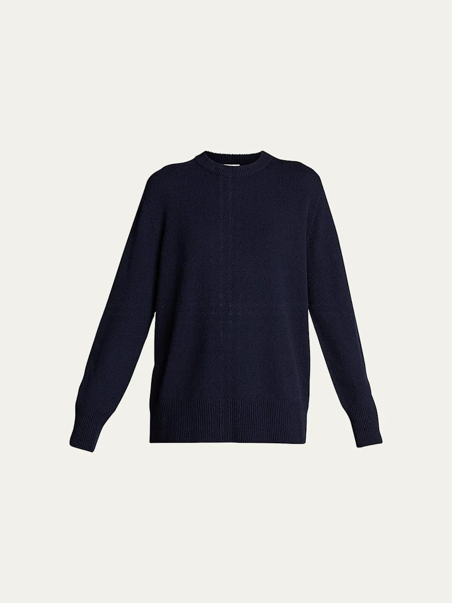 THE ROW "Sibem" knit sweater. Approx. length: 25" from shoulder to hem. Crew neckline. Long sleeves. Dropped shoulder. Relaxed fit. Ribbed trim. Pullover style. Wool/cashmere. Dry clean. Made in Italy. Model is 5'10"/177cm. Online Inquiries: BGS21_B63VN| Store Inquiries: #4018275