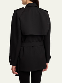 THE ROW "Usuaia" hybrid jacket is crafted of a technical twill and consists of a belted vest with a bolero-like jacket atop Point collar with throat latch; single-breasted front Long sleeves; button cuffs Shoulder epaulets Self-tie belted waist Hip welt pockets Straight fit Hem falls below the hip Wool/silk Made in Italy Online Inquiries: BGS21_BB1ZR| Store Inquiries: #5444617