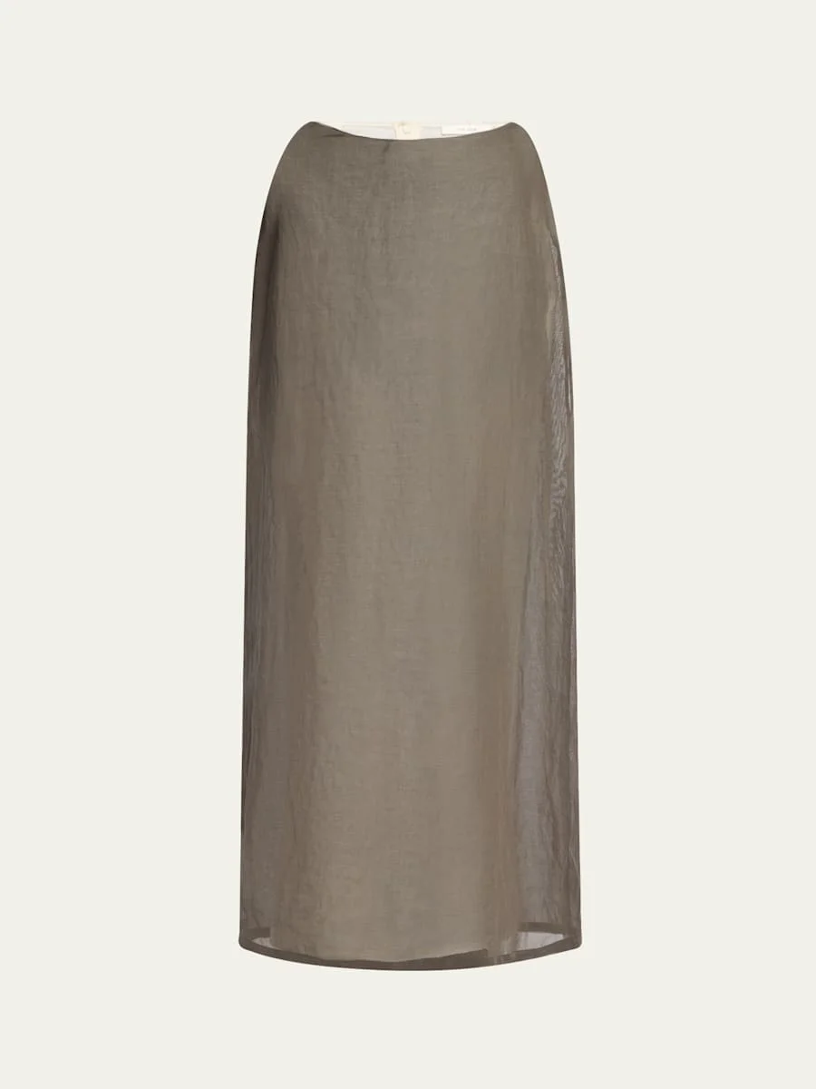 THE ROW "Zaira" layered skirt with a raw waist edge High waist Full length Skirt falls straight from hip to hem Center-back slit hem Back zip Cotton Made in Italy Online Inquiries: BGS21_BA39V| Store Inquiries: #5024340