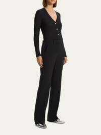 Theory slim-leg trousers with tab detail at waistband Approx. measurements: 11.0" rise; 33.5" inseam High waist Front slash pockets Back welt pockets Straight legs Full length Hook/zip fly Triacetate/polyester Imported Model is 5'10"/177cm. Online Inquiries: BGS21_T5KA4| Store Inquiries: #4738531