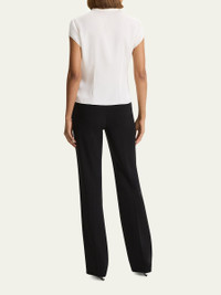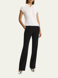 Theory shirt blouse tailored with front and back darts Approx. 20.5"L from shoulder to hem Spread collar Short cap sleeves Buttonfront placket Fitted Silk Dry clean Imported Size Note: Item runs small, consider ordering a size up. Model height: 5'10"/177cm.