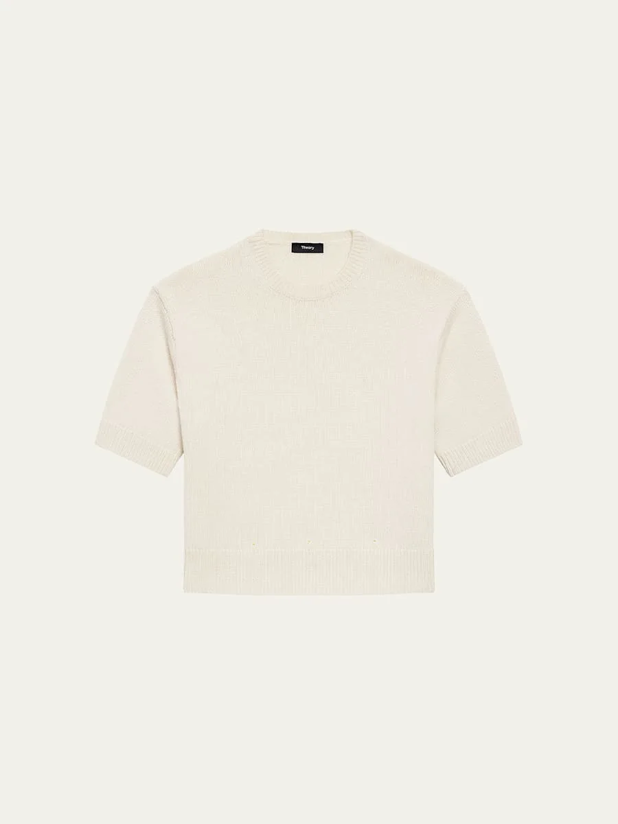Theory easy tee with wide sleeves and a ribbed finish Approx. 20.5"L from shoulder to hem Crew neckline Short sleeves Cropped length Pullover style Cashmere Dry clean Imported