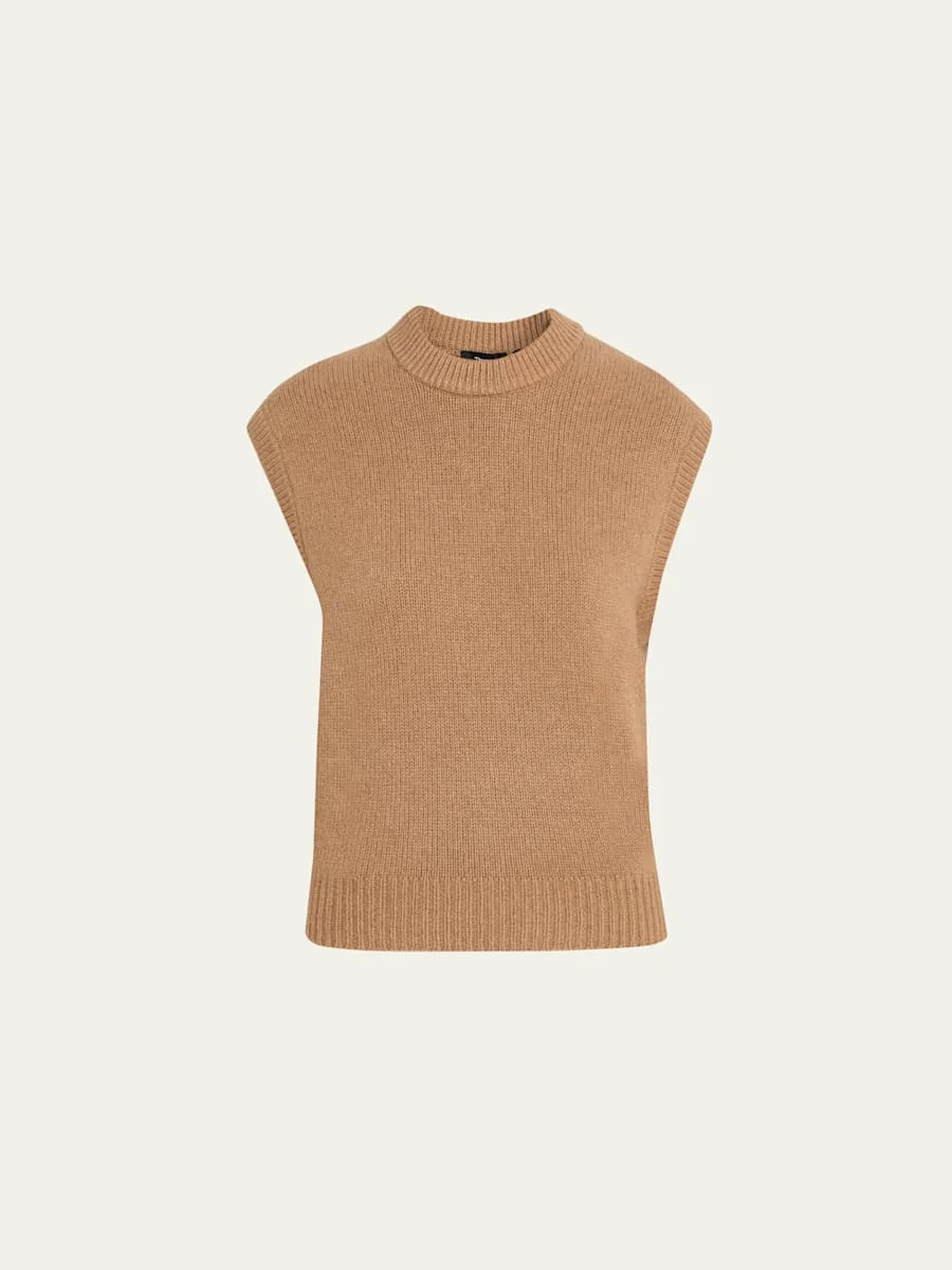 Luxurious cashmere vest with ribbed trim by Theory. Crew neckline Sleeveless Relaxed fit Hem falls to the hip Pullover style Cashmere Dry clean Made in Italy