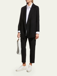Theory ''Clairene" luxe jacket with doubleface finishing on all seams Notched lapels; open front Bracelet sleeves Onseam pockets Relaxed fit Hem sits below hips wool/cashmere Do not iron, machine wash cold, machine wash tumble dry Imported