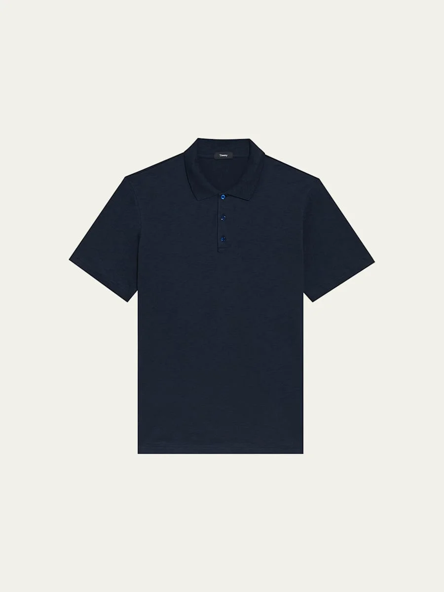 Men's lightweight slub polo shirt by Theory Spread collar; three-button placket Short sleeves Regular fit Pullover style Cotton Made in Peru Model is 6'1"/185cm. Online Inquiries: BGS21_N9ARH| Store Inquiries: #4325002