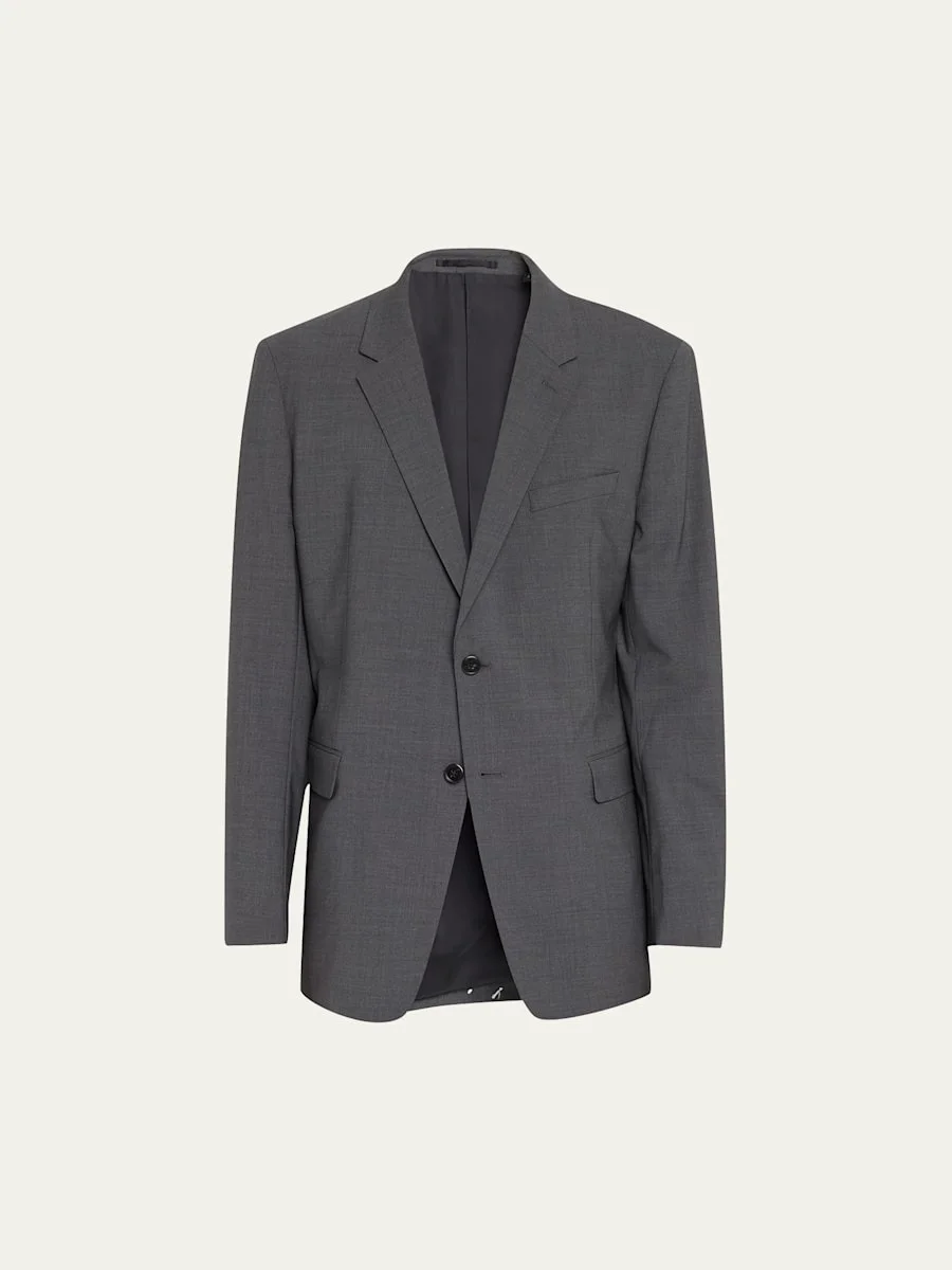 Theory "Chambers" jacket in stretch-wool blend. Notched collar; two-button front. Ticket pocket at left chest. Flap pockets at sides. Tailored fit. Cutaway hem. Virgin wool/Lycra%26#174; spandex. Imported. Model is 6'1"/185cm. Online Inquiries: BGS21_NA1ZQ| Store Inquiries: #2588999