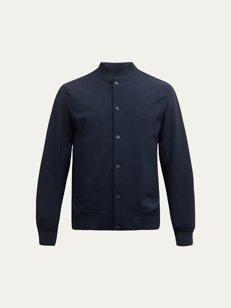 Theory "Murphy" jacket cut from Precision Ponte-a new wrinkle and abrasionresistant knit that's durable and easycare Baseball collar; snap front closure Side welt pockets Long sleeves Banded cuffs and hem Polyamide/elastane Lining: Polyester Dry clean Imported