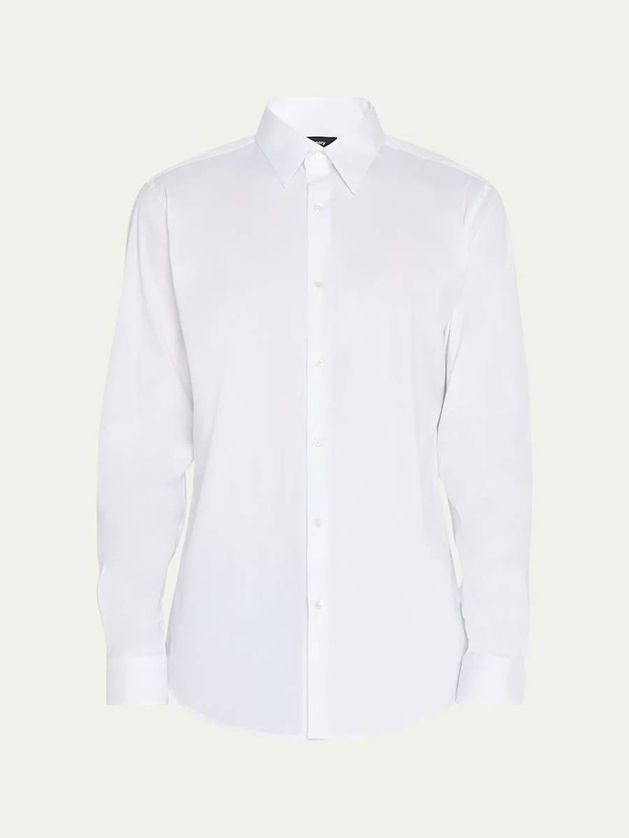 Theory Sylvain woven shirt. Approx. measurements: 27"L front; 30"L back; 26"L sleeve. Spread collar; French-placket button front. Barrel cuff. Yoked back shoulders; darted back. Cotton/nylon/elastane. Machine wash. Imported. Model is 6'1"/185cm. Online Inquiries: BGS21_NELEF| Store Inquiries: #230623