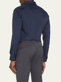Theory Sylvain woven shirt. Approx. measurements: 27"L front; 30"L back; 26"L sleeve. Spread collar; French-placket button front. Barrel cuff. Yoked back shoulders; darted back. Cotton/nylon/elastane. Machine wash. Imported. Model is 6'1"/185cm. Online Inquiries: BGS21_NELEF| Store Inquiries: #230623