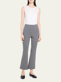 Theory woven kick-flare pants in plaid Approx. 13" rise; 26" inseam; 35" outseam High rise Invisible front zip pockets Fitted through the hip and thigh Ankle length Side zip closure Nylon/polyamide/elastane Dry clean Imported Online Inquiries: BGS21_T6Z4S| Store Inquiries: #5073473