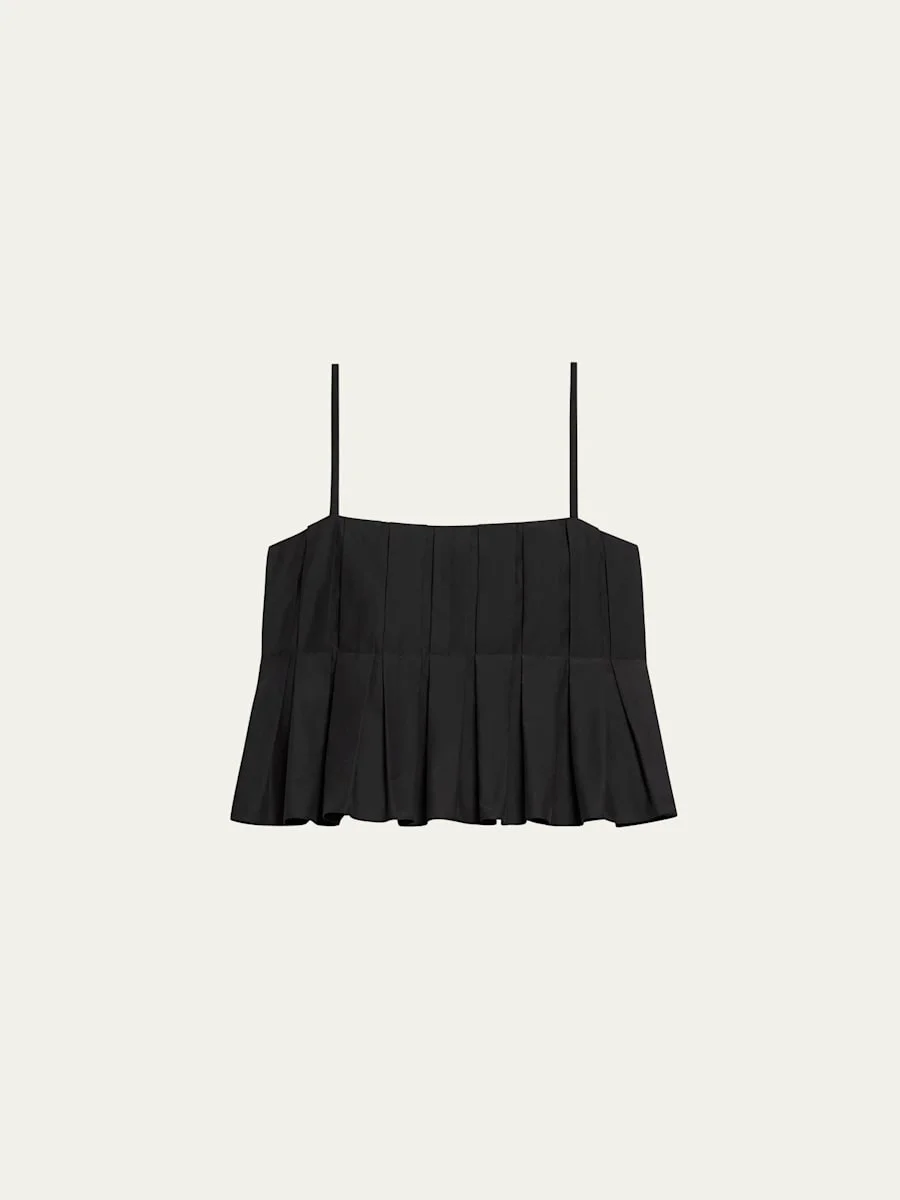 A cropped cami with a wide box pleat detail and elastic at the back. It has adjustable straps. Theory cami top finished with pleating Square neckline Adjustable spaghetti straps Cropped fit Pullover style Cotton/nylon/polyamide Dry clean Imported Online Inquiries: BGS21_T6U2T| Store Inquiries: #5034764