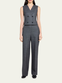 Solid wool suiting vest with a double-breasted front by Theory. V neckline Sleeveless Shrunken fit Hem sits at the hip Button-front Wool Dry clean Imported Online Inquiries: BGS21_T86Y7| Store Inquiries: #5245900
