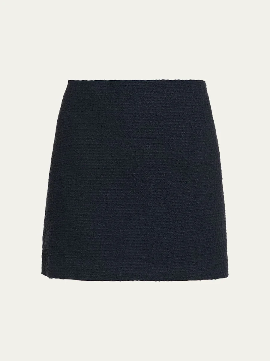 Sleek mini skirt in tweed by Theory. High rise Skirt falls straight from hip to hem Hem falls above the knee Center back zip Cotton/virgin wool Dry clean Made in New Zealand