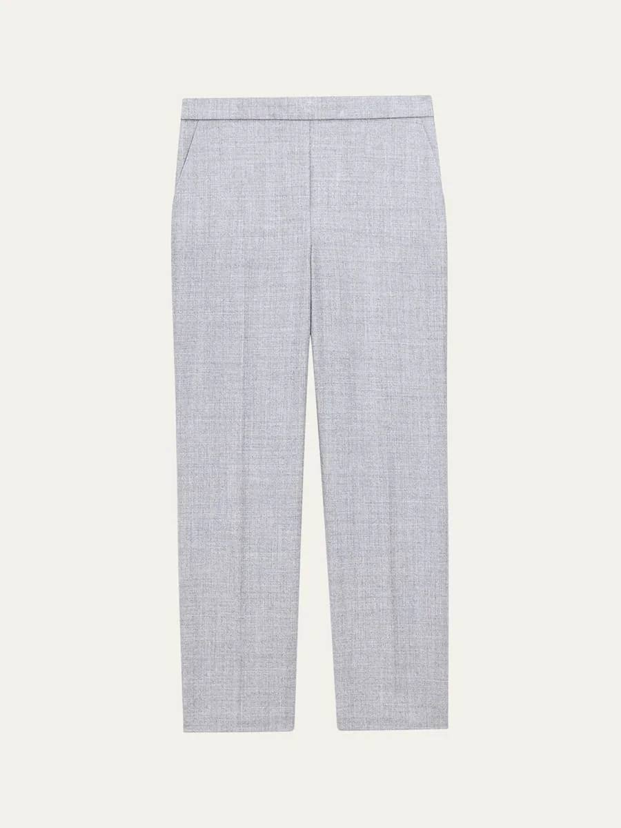 Theory "Treeca" tailored pants in flannel Approx. 26" inseam Mid rise Elasticized back waist Side slip pockets; back welt pockets Cropped at the ankle Straight legs Pull-on style Virgin wool Imported Online Inquiries: BGS21_T8SHX| Store Inquiries: #4863003
