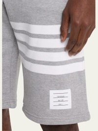 Thom Browne terry sweat shorts Elasticized drawstring waist Side slip pockets Back welt pocket Signature 4-Bar detail at left leg Straight legs Pull-on style Cotton Made in Italy Model is 6'1"/185cm. Online Inquiries: BGS21_N7PXS| Store Inquiries: #4008179