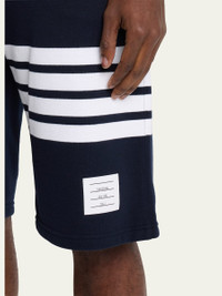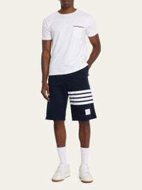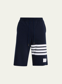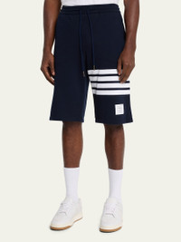 Thom Browne terry sweat shorts Elasticized drawstring waist Side slip pockets Back welt pocket Signature 4-Bar detail at left leg Straight legs Pull-on style Cotton Made in Italy Model is 6'1"/185cm. Online Inquiries: BGS21_N7PXS| Store Inquiries: #4008179