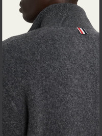 Thom Browne bomber jacket in warm wool fleece Back neck with signature striped grosgrain loop tab Ribbed funnel neckline Two-way zip front Side welt pockets Long sleeves Ribbed cuffs and hem Wool Dry clean Made in Italy Online Inquiries: BGS21_NDGCN| Store Inquiries: #5038876
