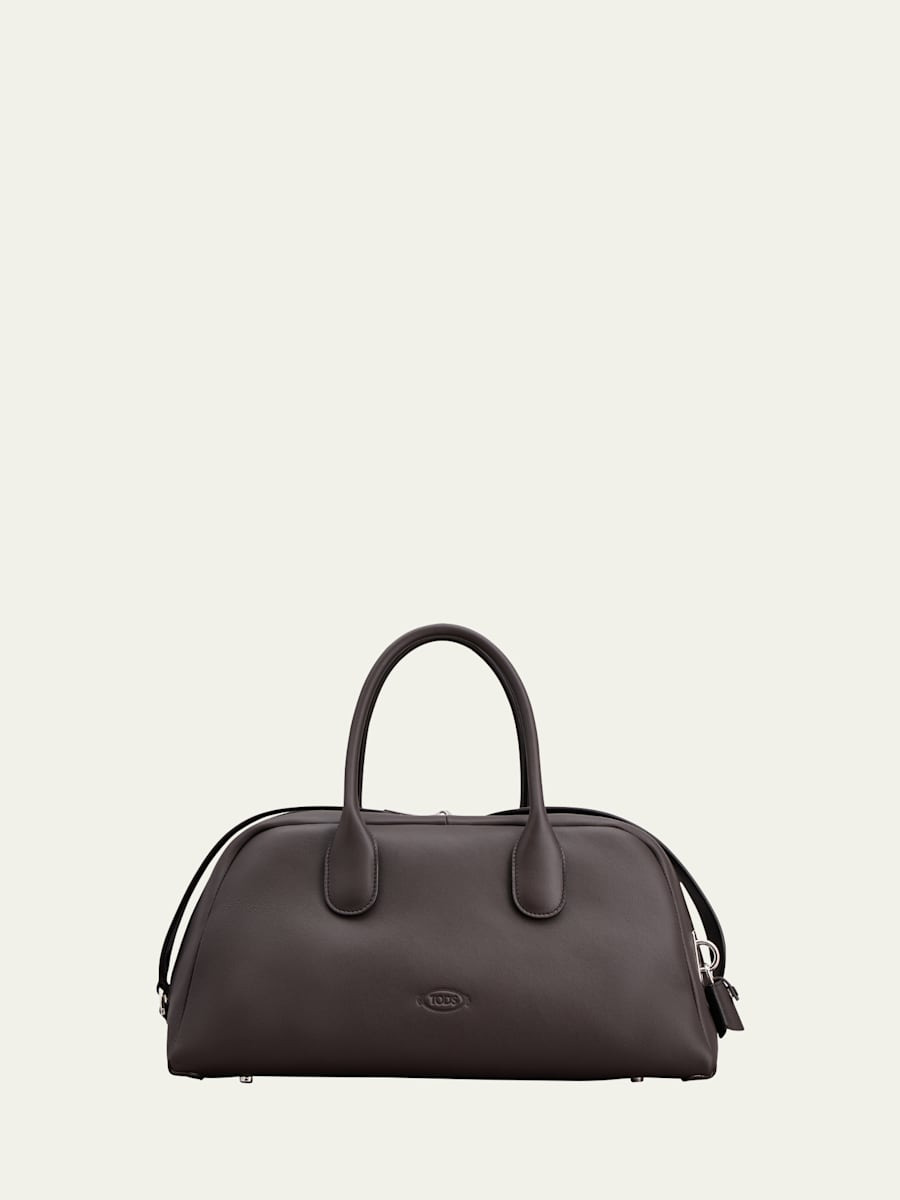 Tod's "Bauletto" top handle bag in calf leather with exposed stitching Rolled top handles Shoulder strap Can be worn as a top handle or shoulder bag Two-way zip top closure Interior, lesh key ring Lining: Leather Feet protect bottom of bag Approx. 7"H x 15"W x 8"D Spot clean Made in Italy Online Inquiries: BGS21_V69PJ| Store Inquiries: #4837556