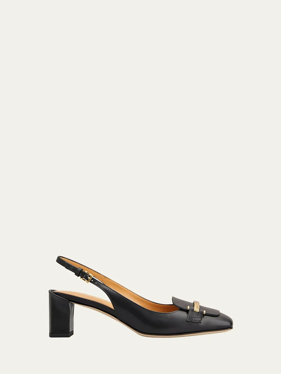 Cuoio Leather Bar Slingback Pumps